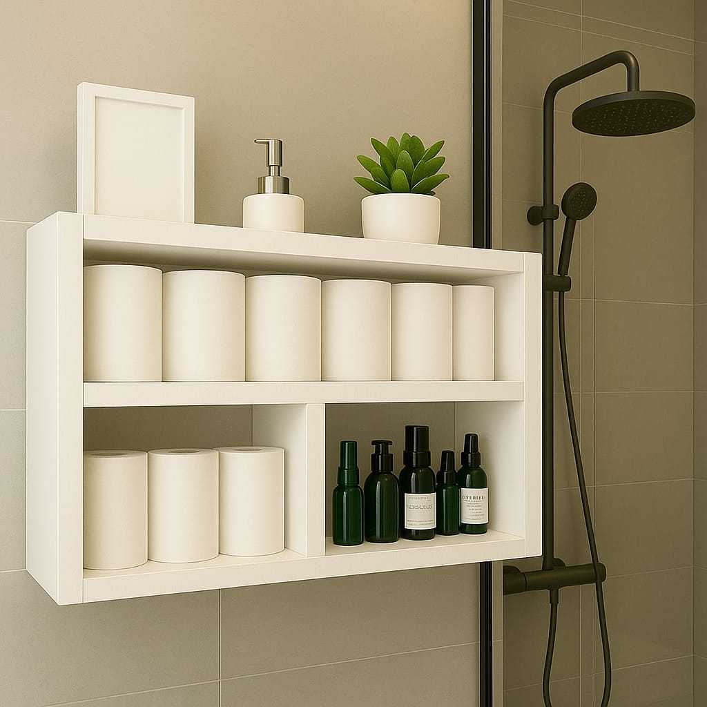 Nicho com Prateleira de MDF Branco para Decoração Banheiro e Organização
