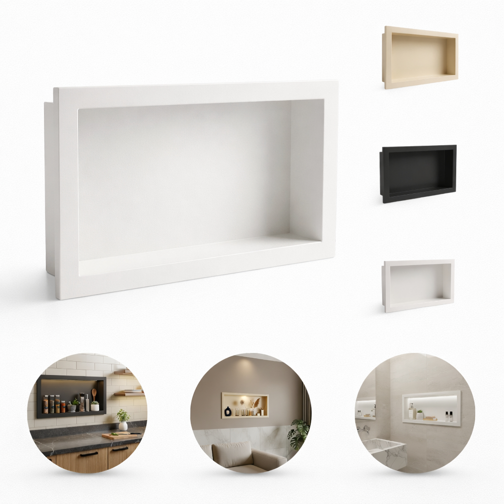 Nicho de Parede Para Banheiro Cozinha Embutir Sala Escritório Quarto Porta Shampoo Resistente Brilhoso 30x60cm Gerplast