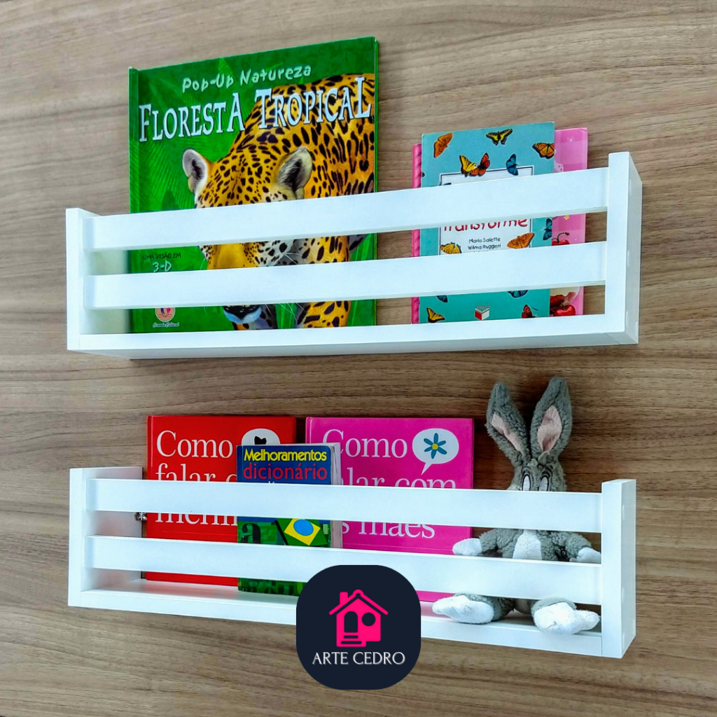 Nicho De Parede Porta Revista Infantil Estante Livreiro Quarto De Bebê 2 Ripas Mdf 40cm