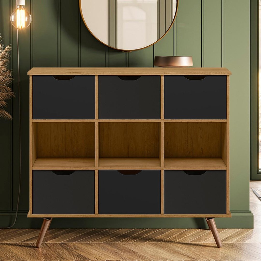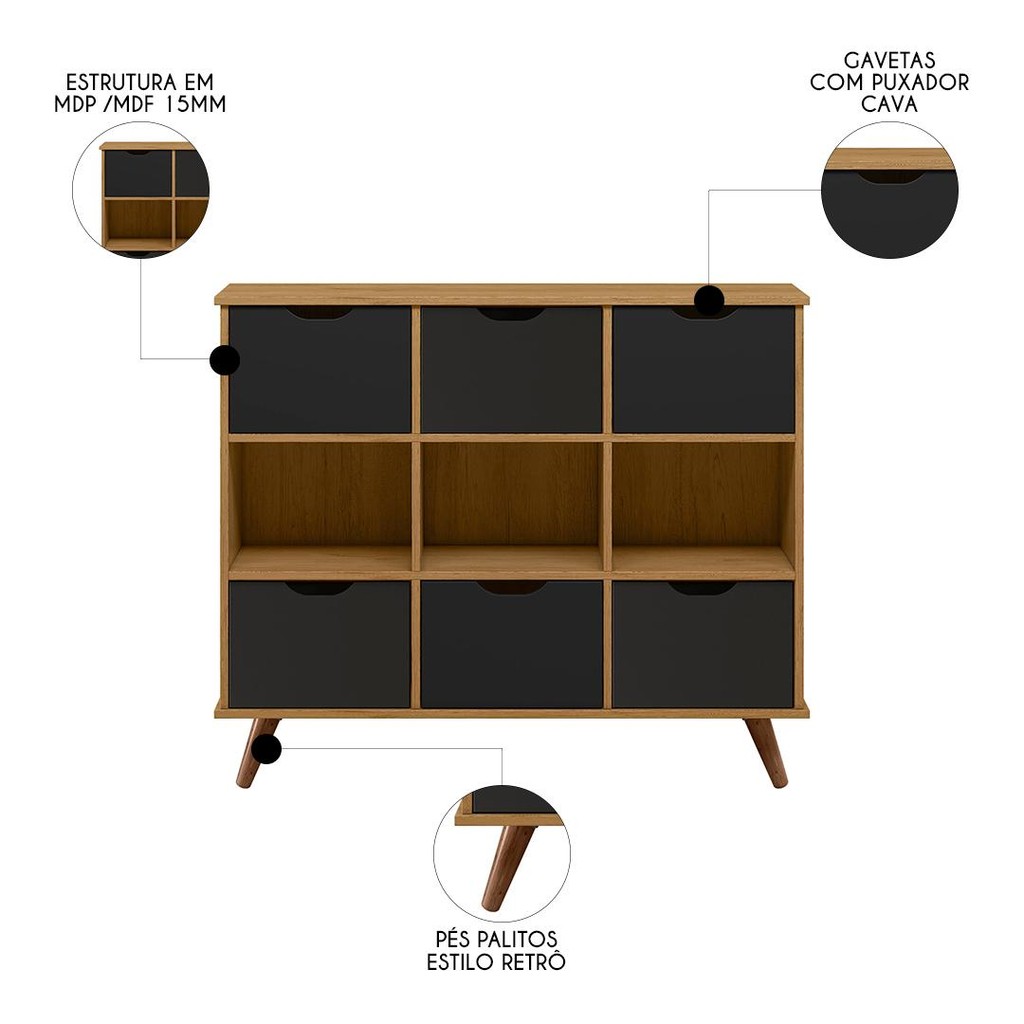 Nicho Organizador Retrô 6 Gavetas Freijó/Preto - Qmovi