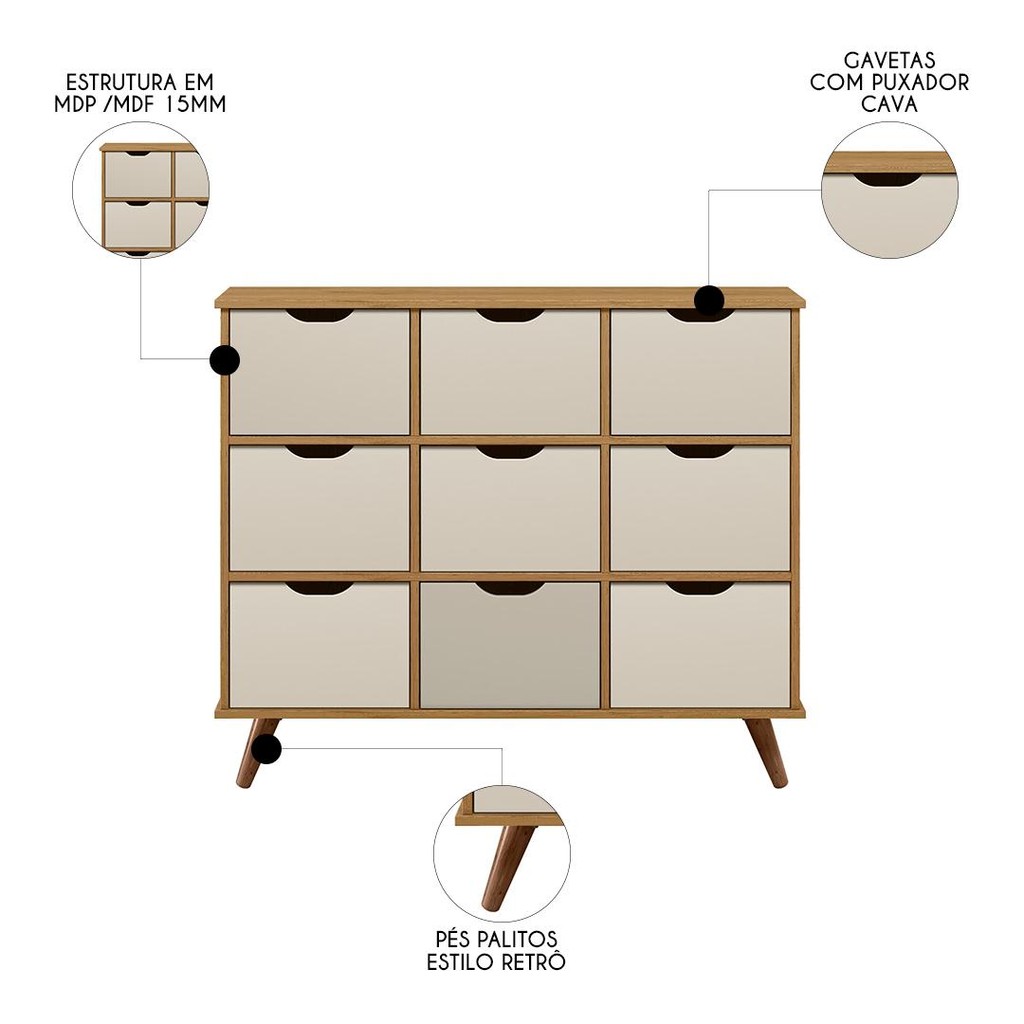 | Nicho Organizador Retrô 9 Gavetas Freijó/Off White - Qmovi este produto | R$ 743,99 | 19% | 5.0/5 | 3 |