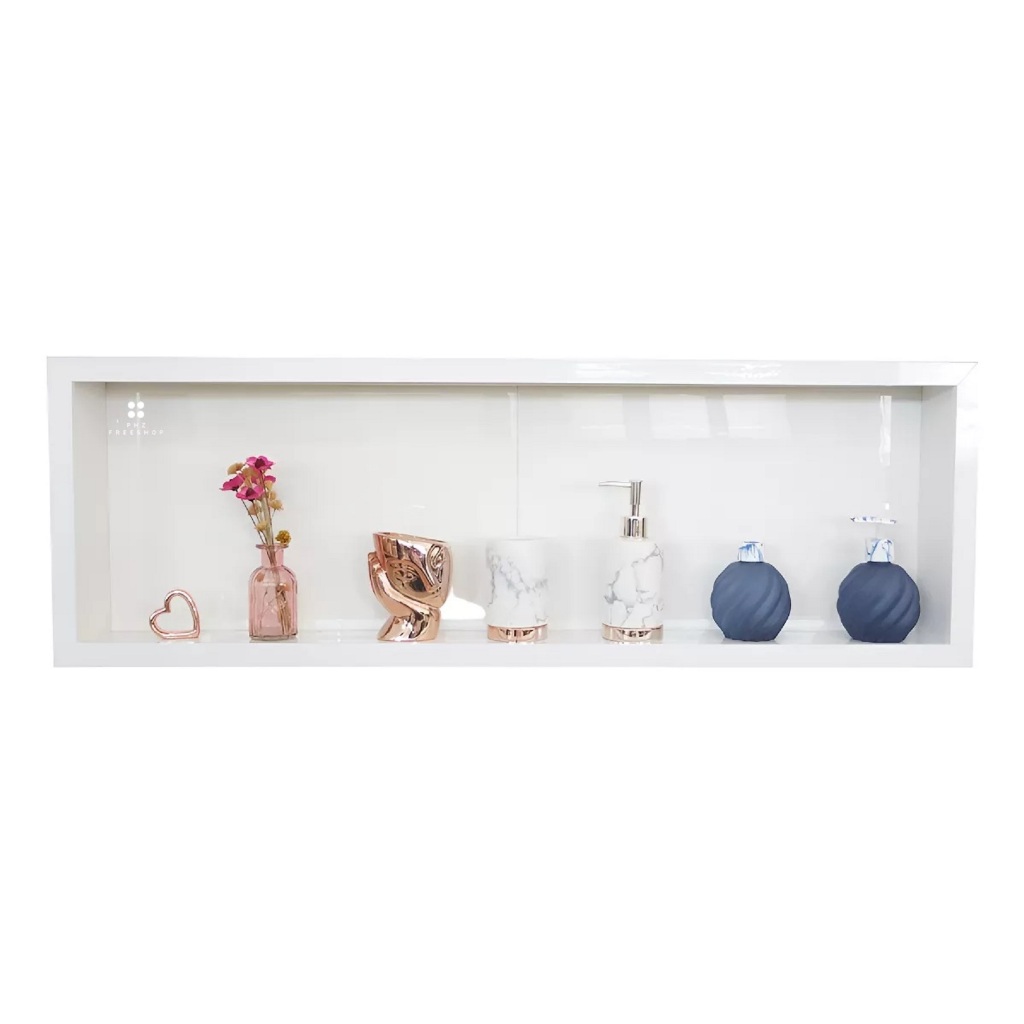 NICHO PORTA SHAMPOO PARA BANHEIRO EM PORCELANATO 1 METRO CARACTERISTICAS: MEDIDAS INTERNAS: 100 cm Comprimento x 30 cm Altura x 10 cm Profundidade BORDA: Alumínio com Pintura Eletrostática (Anticorrosiva e Antiferrugem) MATERIAL: Porcelanato + Borda em Alumínio CORES: Branco - Carrara - Calacata Gold - Madeira - Black - Nero Marquina - Agata - Preto Relevo OBS: O NICHO VAI DIVIDO EM DUAS PARTE PARA SEREM UNIDAS NO ATO DA INSTAÇÃO. INTALAÇÃO: Contrate um profissional com habilidade e capricho pra executar o serviço, use argamassa colante para porcelanato tipo ac3, finalize o acabamento com rejunte nas laterais para evitar entrada de umidade. A PHZfreeshop é Voltada para Produtos Inovadores, com 15 anos de Mercado Sempre Visando a QUALIDADE DE NOSSOS PRODUTOS e o Melhor Atendimento ao Cliente. TODOS NOSSOS PRODUTOS SÃO TESTADOS ANTES DO ENVIO, NOSSAS EMBALAGENS SÃO EM MADEIRA E ISOPOR PARA QUE O PRODUTO CHEGUE INTACTO AO CLIENTE. OBS: O NICHO VAI SEPARADO EM DUAS PARTES E SERÁ MONTADO NO ATO DA INSTALAÇÃO. Os Itens Decorativos nas Fotos Não Fazem Parte do Nicho