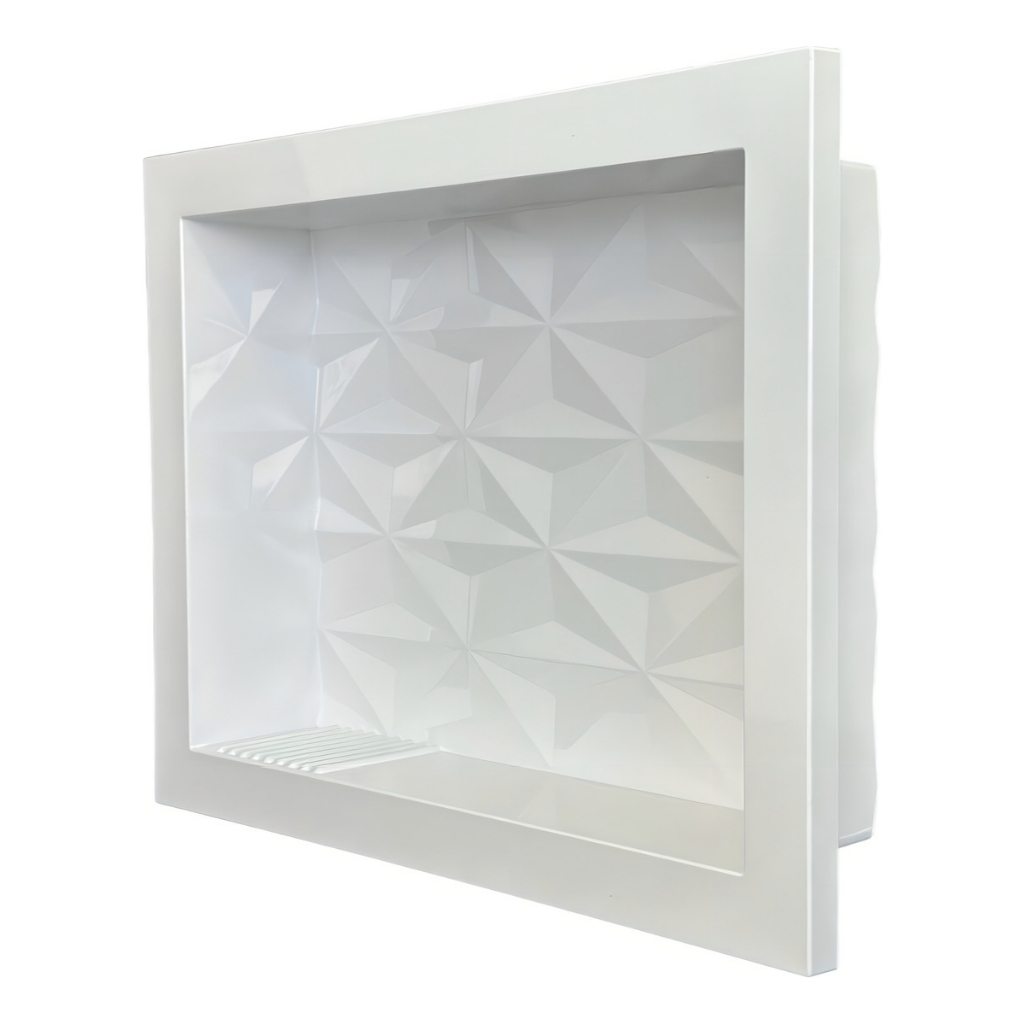 Nicho Para Banheiro Prateleira Embutir 30x60 Fundo 3D Preto Com Borda Suporte para Shampoo
