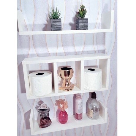 Nicho Para Papel Higiênico + 2 Prateleiras Em U Decorativo 100% MDF Branco fosco Tx