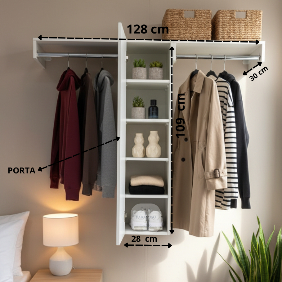 Nicho Suspenso Closet Arara Com Porta - Organizaçao para Seu Quarto ou Lavanderia --- 101