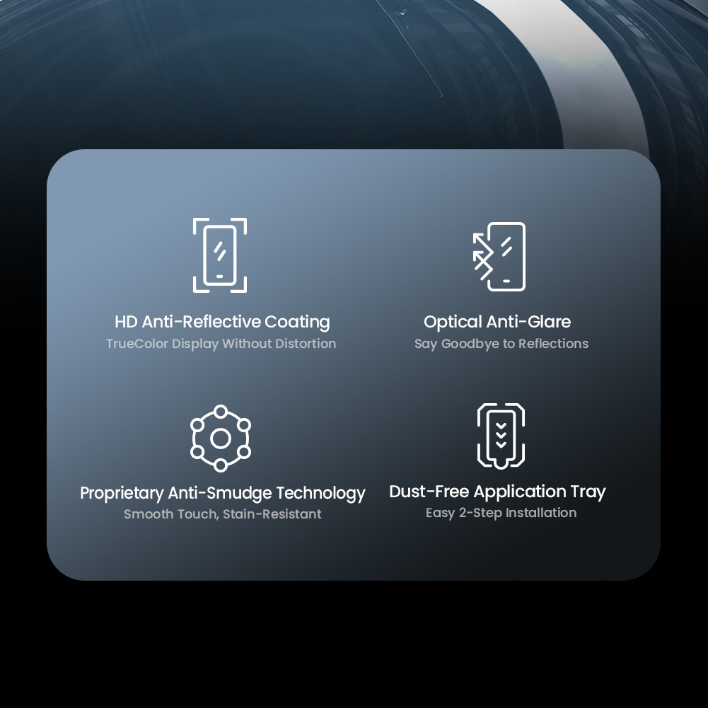 H+ Vidro temperado Pro AR H+ Pro AR Vidro TemperadoCaracterísticas revestimento anti-reflexo para reduzir o brilho e aumentar a transmissão de luz para uma visibilidade clara, mesmo em luz brilhante, restaurando as cores de tela verdadeiras. Tecnologia anti-manchas proprietária,oleofóbica e hidrofóbica, dureza suave e resistente ao desgaste.9H A bandeja de instalação sem poeira oferece forte resistência a arranhões e quebras. As bordas curvas 3D garantem cobertura de tela cheia e um ajuste perfeito. Inclui uma bandeja de instalação sem poeira para facilitar a aplicação.