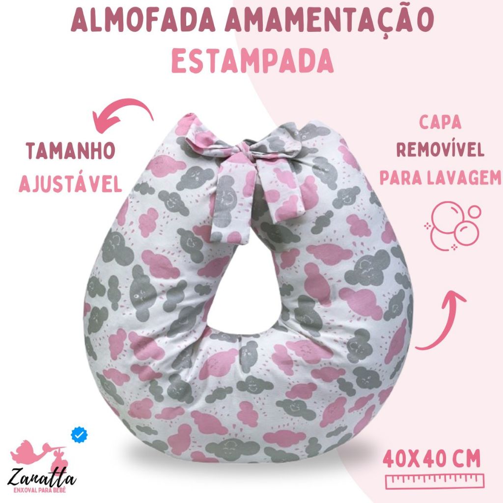 Ninho Redutor Berço com Almofada Amamentação 2 Peças Quarto Enxoval Bebê Menina Nuvem Rosa