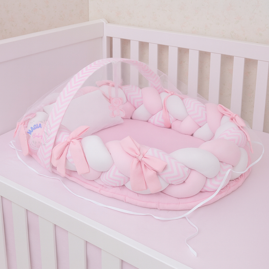 Ninho Redutor de Berço 5 Peças com Trança Removível | Vira Protetor de Berço