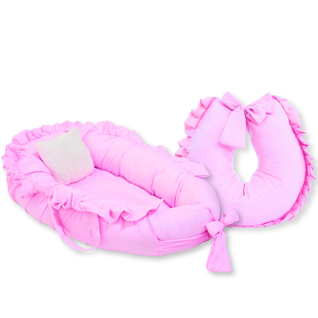 Ninho Redutor de Berço Recém Nascido + Almofada Amamentação - Liso com Babado