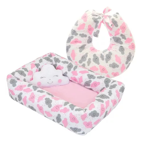Ninho Redutor Quadrado De Berço + Almofada Amamentação 3 Peças Menino, Menina, Unissex Recem Nascido Enxoval