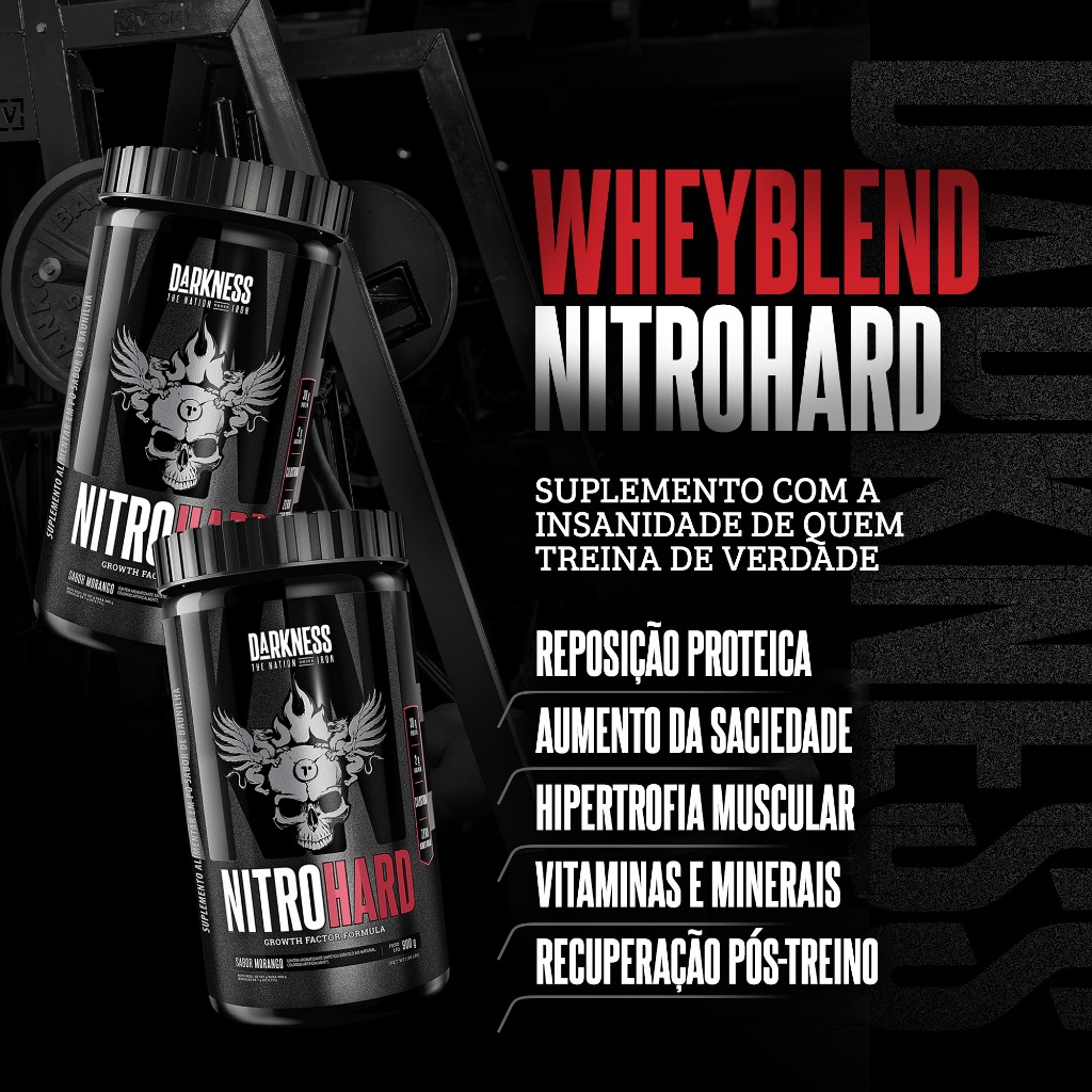 Nitrohard 900g Darkness - Suplemento Pós-Treino com Proteína e Colostro Bovino