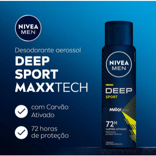 NIVEA MEN Antitranspirante Aerossol Deep Sport MaxxTech Carvão Ativado 150ml