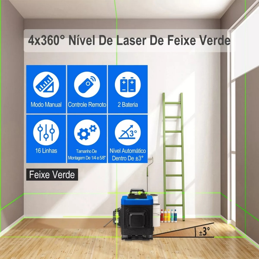 Nível A Laser 16 Linhas 4d Autonivelante+2 Baterias+Suporte