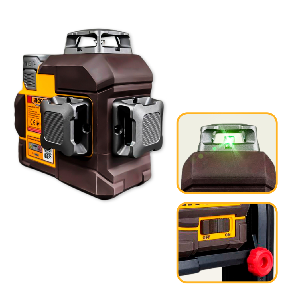 Nível a Laser Ingco 3x360° HLL301201 Verde Autonivelante Recarregável com Maleta