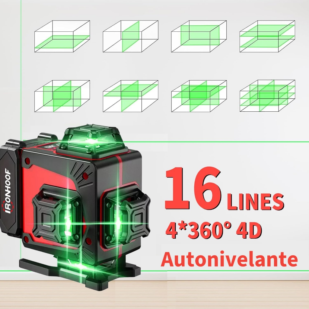 Nivel A Laser Profissional 16 Linhas Com Tripé Verde 4D 2 Baterias