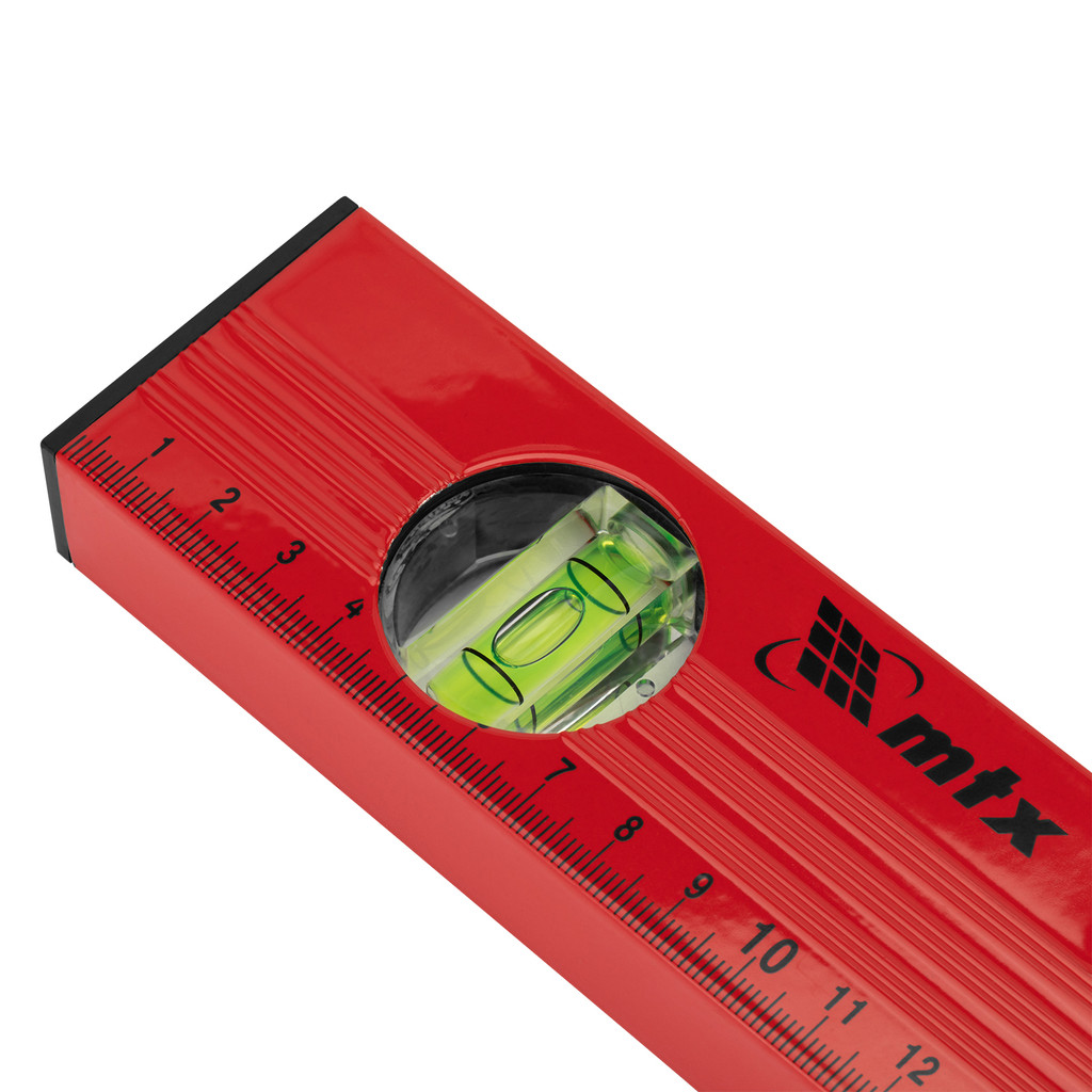 NIVEL DE ALUMINIO, COM REGUA, VERMELHO, 3 BOLHAS, 12POL., 300MM, 1PC // MTX