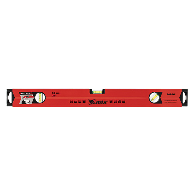NIVEL DE ALUMINIO, REFORCADO, 3 BOLHAS, 1 BOLHA COM ESPELHO, 24POL., 600MM, 1PC // MTX