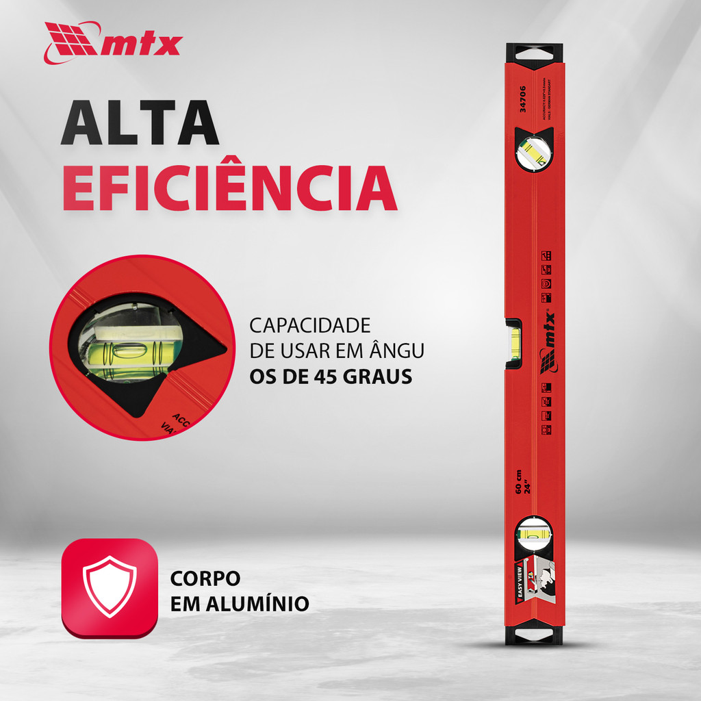O Nível Magnético de Alumínio MTX 347069, com seu comprimento de 600 mm, é uma ferramenta essencial para profissionais que exigem precisão e durabilidade em suas medições. Este nível reforçado é meticulosamente projetado para fornecer leituras precisas de desvios da vertical, horizontal e ângulos de 45 graus, tornando-se um instrumento indispensável em uma vasta gama de aplicações de construção e instalação. Funcionalidades Exclusivas: Três Bolhas de Alta Precisão: Equipado com três bolhas, o Nível MTX 347069 oferece capacidade excepcional para detectar qualquer desvio das normas estabelecidas, garantindo que suas estruturas estejam perfeitamente niveladas. A presença de um visor espelhado embutido é um destaque, pois aumenta a facilidade de leitura dos resultados, mesmo em condições de luz desfavoráveis. Visor Espelhado para Leituras Facilitadas: A integração de um refletor espelhado eleva a conveniência do trabalho, permitindo uma visualização clara e direta dos resultados sem a necessidade de mudança de posição, o que é especialmente útil em espaços confinados ou em alturas. Vantagens Competitivas: Durabilidade para Uso Intensivo: O perfil de alumínio deste nível é especificamente projetado para resistir às demandas de um uso intensivo, assegurando que a ferramenta mantenha sua integridade e precisão ao longo do tempo, mesmo sob condições adversas. Estabilidade Aprimorada Contra Torção: As pequenas nervuras de rigidez incorporadas ao design do nível não só aumentam sua resistência estrutural, mas também previnem a torção, garantindo que as medições sejam sempre confiáveis e precisas. Facilidade de Uso com Faixa Magnética: A inclusão de uma faixa magnética robusta para fixação em superfícies metálicas transforma o nível em uma ferramenta extremamente versátil, ideal para uma variedade de tarefas, especialmente em trabalhos de encanamento, onde a estabilidade e a precisão são fundamentais. Proteção Contra Impactos e Detritos: As tampas de extremidade não só protegem a ferramenta contra danos mecânicos e detritos, mas também oferecem a conveniência do armazenamento suspenso através dos orifícios disponíveis, otimizando a organização do espaço de trabalho e garantindo que o nível esteja sempre acessível. O Nível Magnético de Alumínio MTX 347069 é mais do que uma simples ferramenta de medição; é um aliado indispensável para garantir a precisão em projetos de construção, instalação e manutenção. Combinando funcionalidades inovadoras, construção robusta e facilidade de uso, este nível estabelece um novo padrão de excelência e confiabilidade para profissionais em diversos campos de atuação.