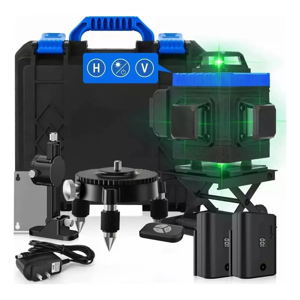 Nível De Laser Verde 4D De 16 Linhas Com Suporte E Duas Baterias