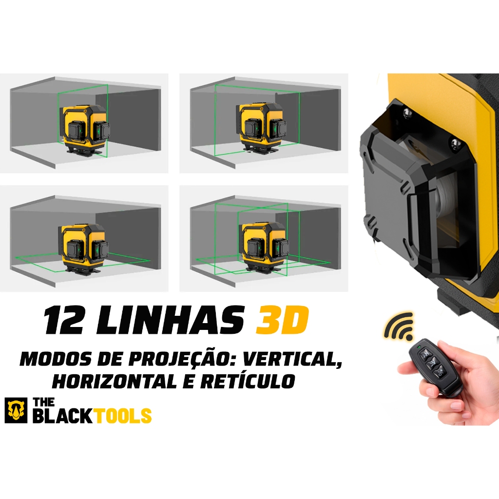 Nível Laser 12 Linhas Esquadro E Suporte Recarregavel Profissional Autonivelante - The Black Tools