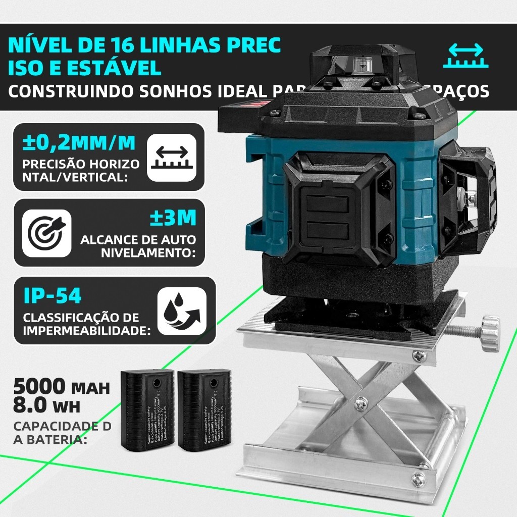 Nível Laser 4D de 16 Linhas 360 ° Ferramentas Rotativas IP54 auto nivelamento Medição Inclinada
