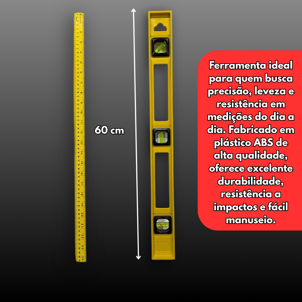 Nível Profissional GolField 60 cm Régua 3 Bolha ABS Prumo Medição Nivelador