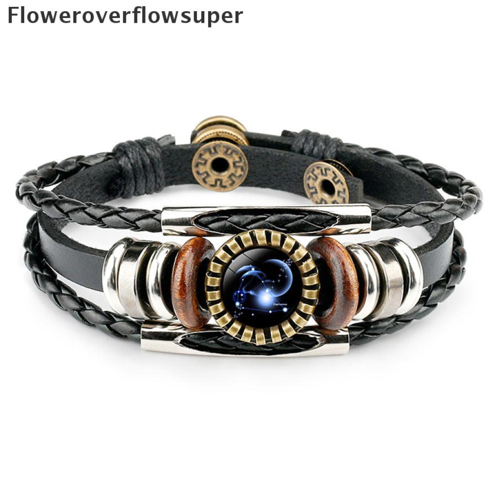 [Nobre Vida] 12 Constelação Zodíaco Sinal De Couro Trançado Preto Câncer idro Cúpula Jóias Punk Homens