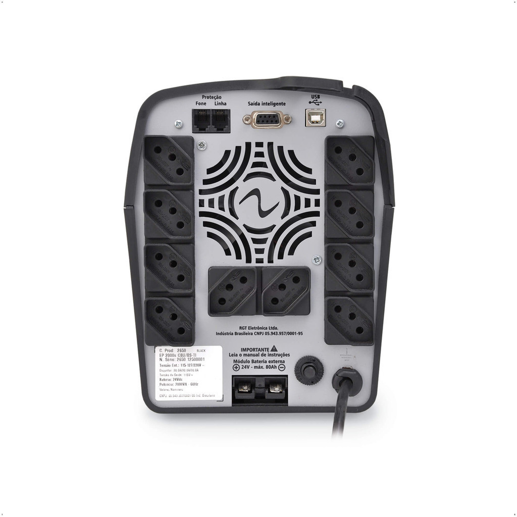 Características:- Marca: Ragtech- Modelo: 4035Características Principais:- Guia de cabos- Conector para expansa?o de bateria- Display digital inteligente exibe diversos para?metros- Software de gerenciamento- Estabilizador interno com 11 esta?gios- Full range- Porta USB- Powerlook (battery save)Especificações:- Forma de onda: Senoidal- Fator de pote?ncia: 0,7- Selec?a?o da tensa?o de entrada: Full range- Nu?mero de tomadas: 10 tomadas- Voltagem: 115V- Protetor telefo?nico: Sim- Display digital: Sim- Conector de bateria: Modelos CB, CBu e VIO- Porta de comunicac?a?o USB e RS-232C: Modelos USB, CBu e VIO- Sensor de temperatura com desligamento: Sim- Tecnologia RMS- Tecnologia SenoidalPeso e Dimensões:- Dimensões: 26 x 29 x 11cm- Peso: 10kgConteúdo da Embalagem:- Nobreak Easy Pro Ragtech 1400VA