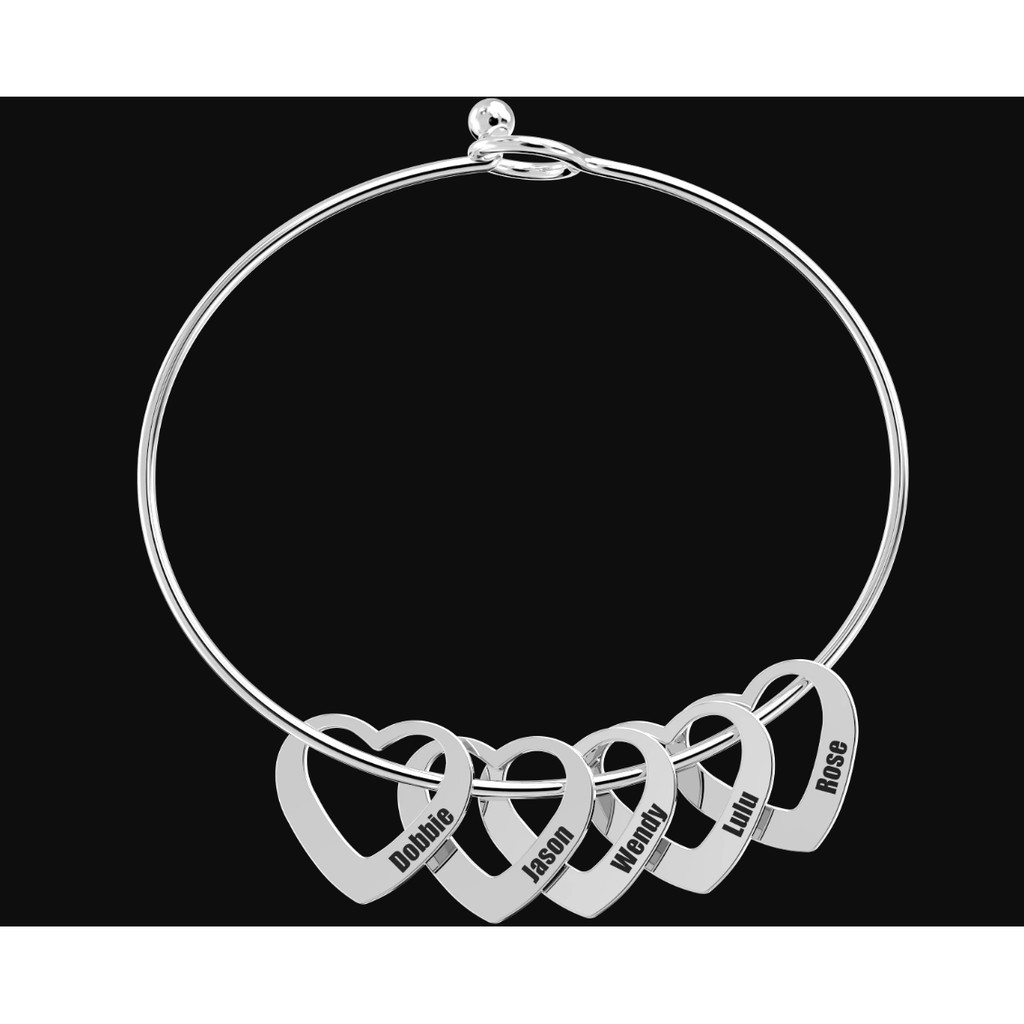 Como pedir: Envie nomes gravados para nós, Charme de coração oco para cada charme de coração oco colocar um nome. Trate-se sozinho ou alguém especial para uma linda pulseira personalizada! Nossa Pulseira Bangle com Pingentes em Formato de Coração é ideal para comemorar o amor, Amizade, e família. Projetado para ser usado por conta própria ou empilhado com outras pulseiras, A peça linda apresenta uma pulseira simples adorada com corações abertos, Cada um inscrito com o nome, apelido ou palavra inspiradora de sua escolha. Size: Inner diameter of bangle: 60mm