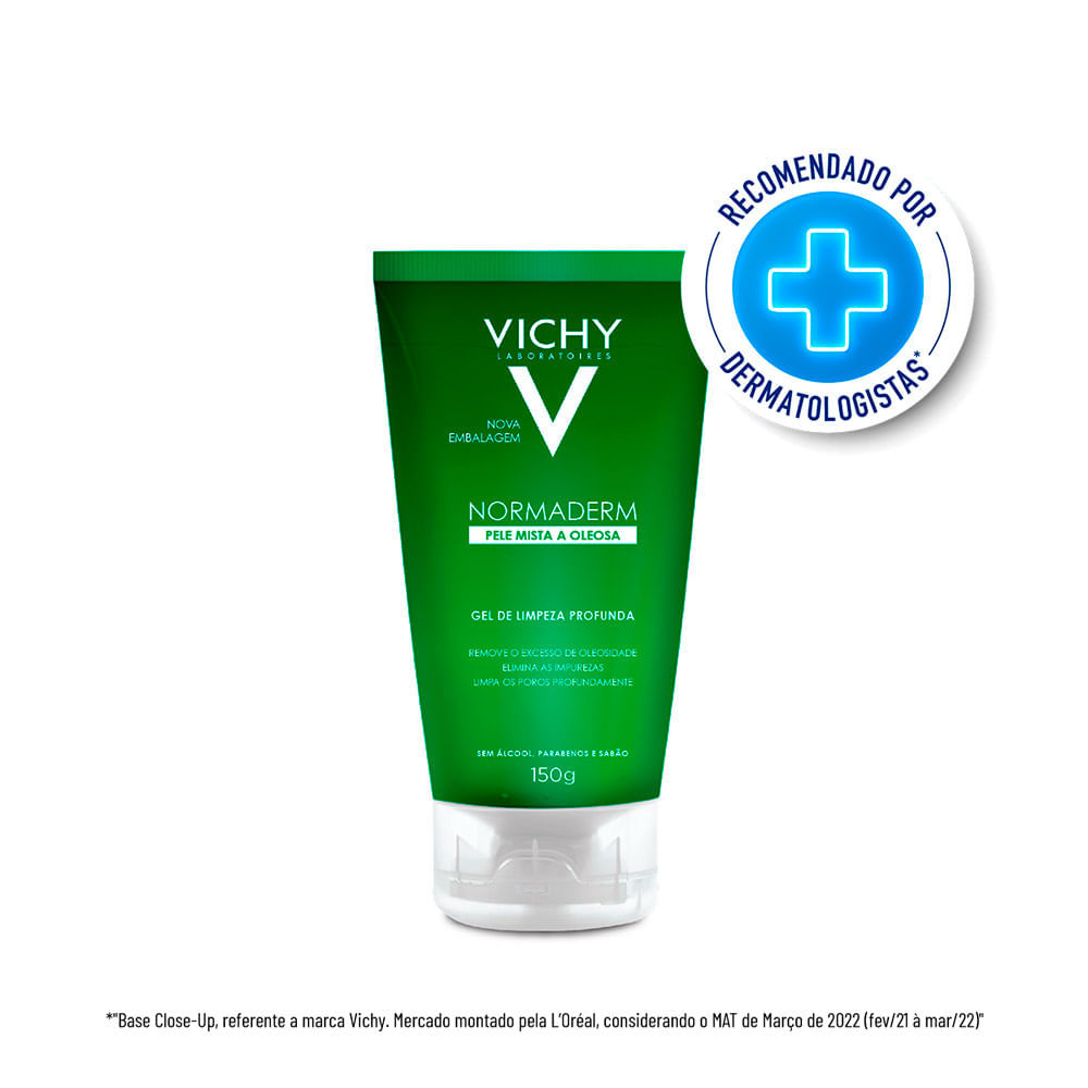 NORMADERM VICHY GEL DE LIMPEZA PROFUNDA FACIAL Pele Mista a Oleosa Gel de limpeza profunda substitui o sabonete líquido. Indicação: Limpeza diária com enxágue para peles mistas a oleosas. Elimina as i
