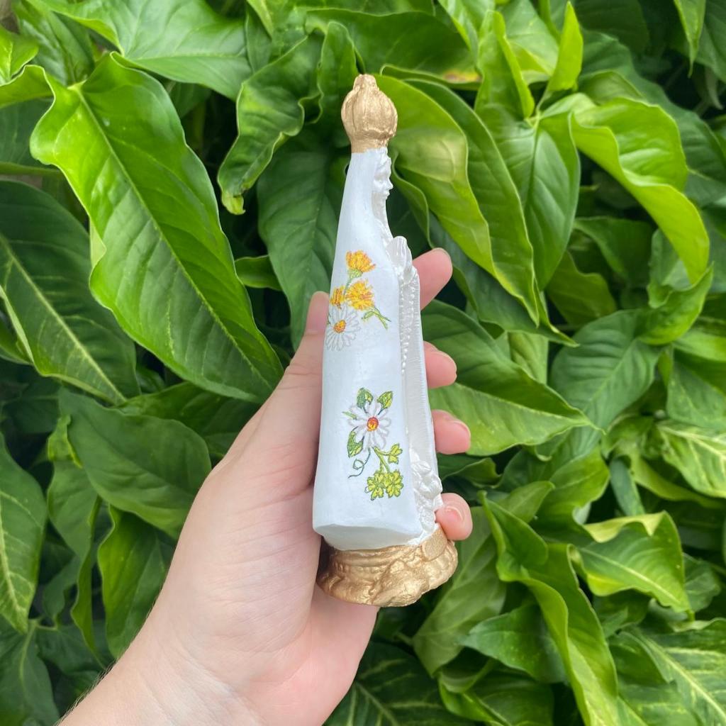 Nossa Senhora Aparecida 15cm em Decoupagem Margaridinha/Decoração pro lar/ Lembrança casamento ou batizado