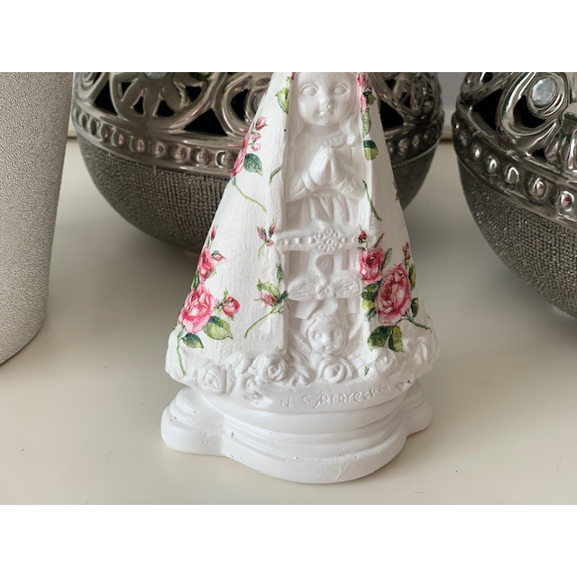 Nossa senhora aparecida manto mini flores rosas 15 cm gesso