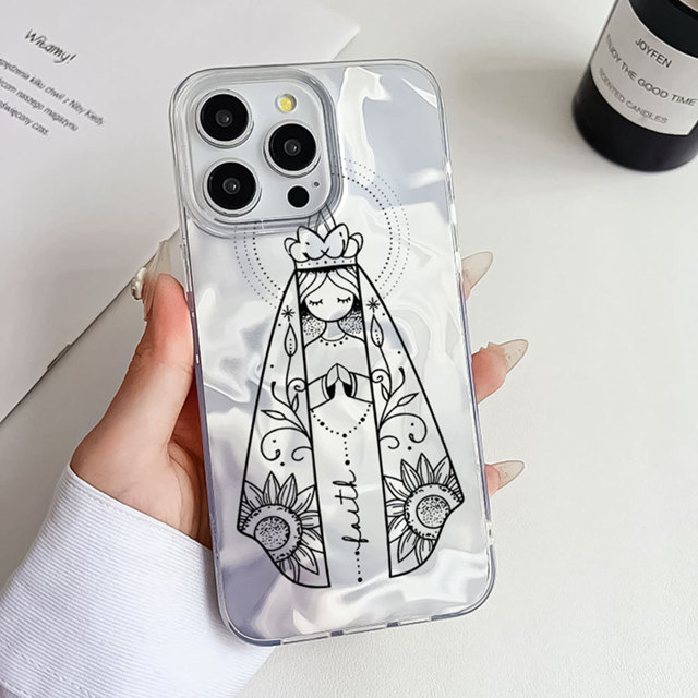 Nossa Senhora Capinha Capa Para iPhone 17 Ar 13 11 12 14 15 16 Plus Pro Max XR Prata Brilho INS Anti-Impacto