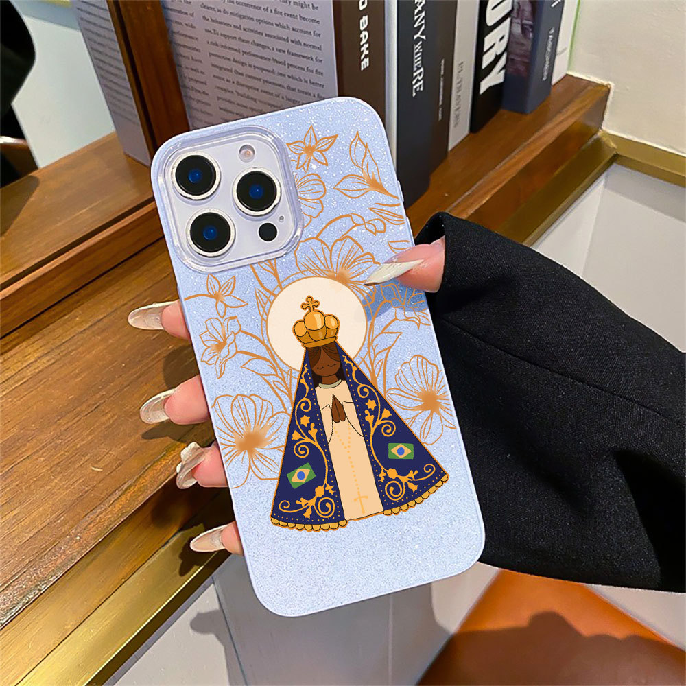 Nossa Senhora Capinha Para iPhone 17 Air 16 15 14 Plus 13 12 11 Pro Max XR Glitter Bling À Prova De Choque