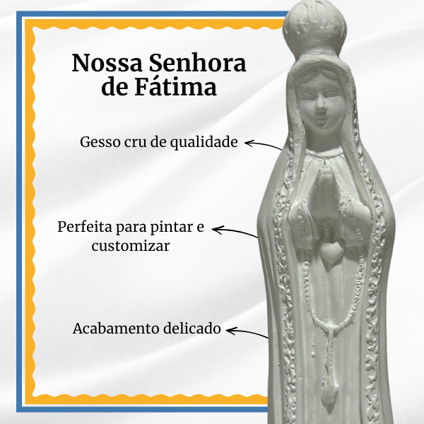 | Nossa Senhora de Fátima 20cm em Gesso Cru este produto | R$ 10,90 | — | 4.8/5 | 33 |