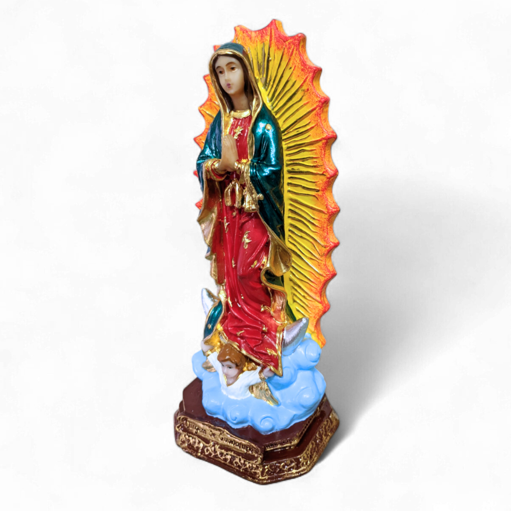---- ENVIO IMEDIATO PARA TODO O BRASIL ---- Linda imagem de Nossa Senhora de Guadalupe, padroeira das Américas e símbolo de fé, proteção e milagres. Feita em resina de alta qualidade, com 15 cm de altura, essa peça é perfeita para altar doméstico, decoração religiosa ou como um presente espiritual para devotos. Com detalhes refinados e as tradicionais rosas aos seus pés, essa imagem é um convite à devoção e uma bênção para o seu lar. Nossa Senhora de Guadalupe é uma das figuras mais veneradas no mundo, especialmente nas Américas, e sua imagem é associada a inúmeros milagres e graças. Alguns dos milagres mais notáveis atribuídos à sua devoção incluem: Curas milagrosas: Muitos fiéis relatam curas inexplicáveis, especialmente em casos de doenças graves, incuráveis ou crônicas, após recorrerem a Nossa Senhora de Guadalupe com fé e confiança. Proteção divina em momentos de perigo: Nossa Senhora de Guadalupe é invocada para proteção em momentos de risco, sendo uma intercessora poderosa em situações de acidentes, viagens perigosas ou outras situações de emergência. Ajuda em dificuldades financeiras e materiais: Diversos testemunhos relatam milagres de providência financeira e auxílio em momentos de necessidade, como forma de alívio em tempos de dificuldades econômicas ou materiais. Conversões e fortalecimento da fé: Nossa Senhora de Guadalupe é conhecida por ser uma fonte de conversões espirituais, especialmente entre aqueles que estavam afastados da Igreja, e muitos fiéis relatam um fortalecimento significativo de sua fé. Consolação em momentos de aflição: Nossa Senhora de Guadalupe traz conforto e paz aos corações aflitos, ajudando aqueles que enfrentam sofrimentos emocionais, familiares ou espirituais, oferecendo consolo e renovação. Essa imagem de Nossa Senhora de Guadalupe não é apenas uma peça de decoração, mas uma poderosa fonte de bênçãos e proteção divina. Ao tê-la em seu lar, você convida a Mãe das Américas a interceder por você e por sua família, trazendo paz, cura e bênçãos para todos.