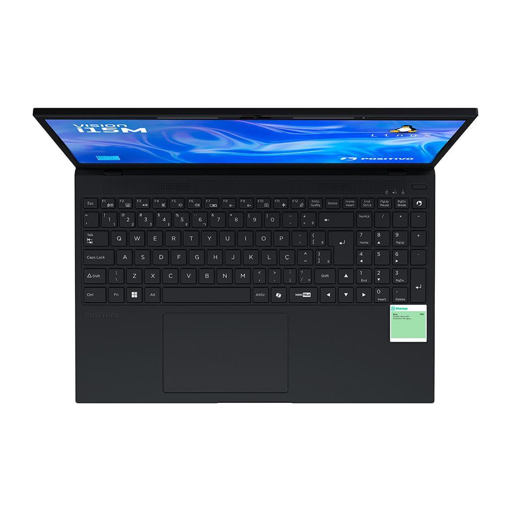 Notebook Positivo Vision i15M Minitela Intel® Core™ i3-N300 Linux 8GB RAM 256GB SSD Wi-Fi 6 - 15,6" Full HD IPS - Preto O novo Positivo Vision i15M com Minitela é o notebook perfeito para quem busca performance com inovação no dia a dia. Agora com o processador Intel Core 3 N300, ele oferece fluidez em multitarefas, mais autonomia de bateria e gráficos otimizados. Ideal para quem estuda, trabalha ou realiza atividades cotidianas, é uma excelente porta de entrada para o mundo dos notebooks com processador Intel Core. Um dos grandes diferenciais do modelo é a exclusiva Minitela de 1,54” no teclado, que permite visualizar notificações do WhatsApp, lembretes, status do dispositivo, previsão do tempo e imagens/GIFs sem precisar alternar de tela. Isso significa mais praticidade, produtividade e foco durante o uso. Além disso, o notebook conta com Lumina Bar de 3 níveis para melhorar a captação da imagem em videochamadas, com webcam HD e proteção de privacidade. O design fino e leve (apenas 19,6 mm de espessura e 1,75 kg) facilita o transporte, enquanto a tela Full HD IPS antirreflexo de 15,6” proporciona conforto visual em qualquer ambiente. O teclado ABNT2 ergonômico com tecla numérica e LED de CAPS LOCK entrega mais conforto na digitação, ideal para quem usa o notebook por várias horas ao dia. Com memória expansível até 16 GB, armazenamento de até 4GB SSD e conectividade moderna com Wi-Fi 6 e USB-C. Uma escolha inteligente para quem está adquirindo o primeiro notebook com processador Intel e valoriza funcionalidade e praticidade..