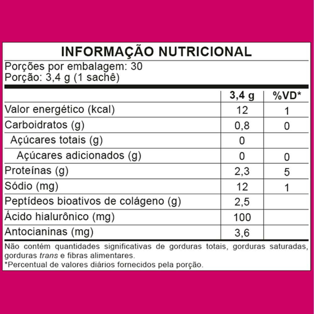 É um suplemento nutricional que contém na formulação colágeno VERISOL associado a ÁCIDO HIALURÔNICO e MOROSIL.Em sinergia esses ativos auxiliam na reposição dos principais componentes estruturais da p