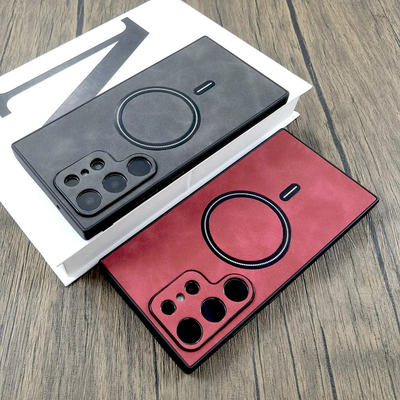 Nova Capa De Couro Fosco À Prova De Choque Para Samsung S24 S23 S22Plus S25 Ultra S21FE Magsafe Carga Sem Fio