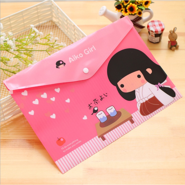 [Nova Chegada] Sacos De Arquivo A4 Desenho Animado Suprimentos De Escritório De Negócios Snap Em PVC Caneta De Presentes Criativas