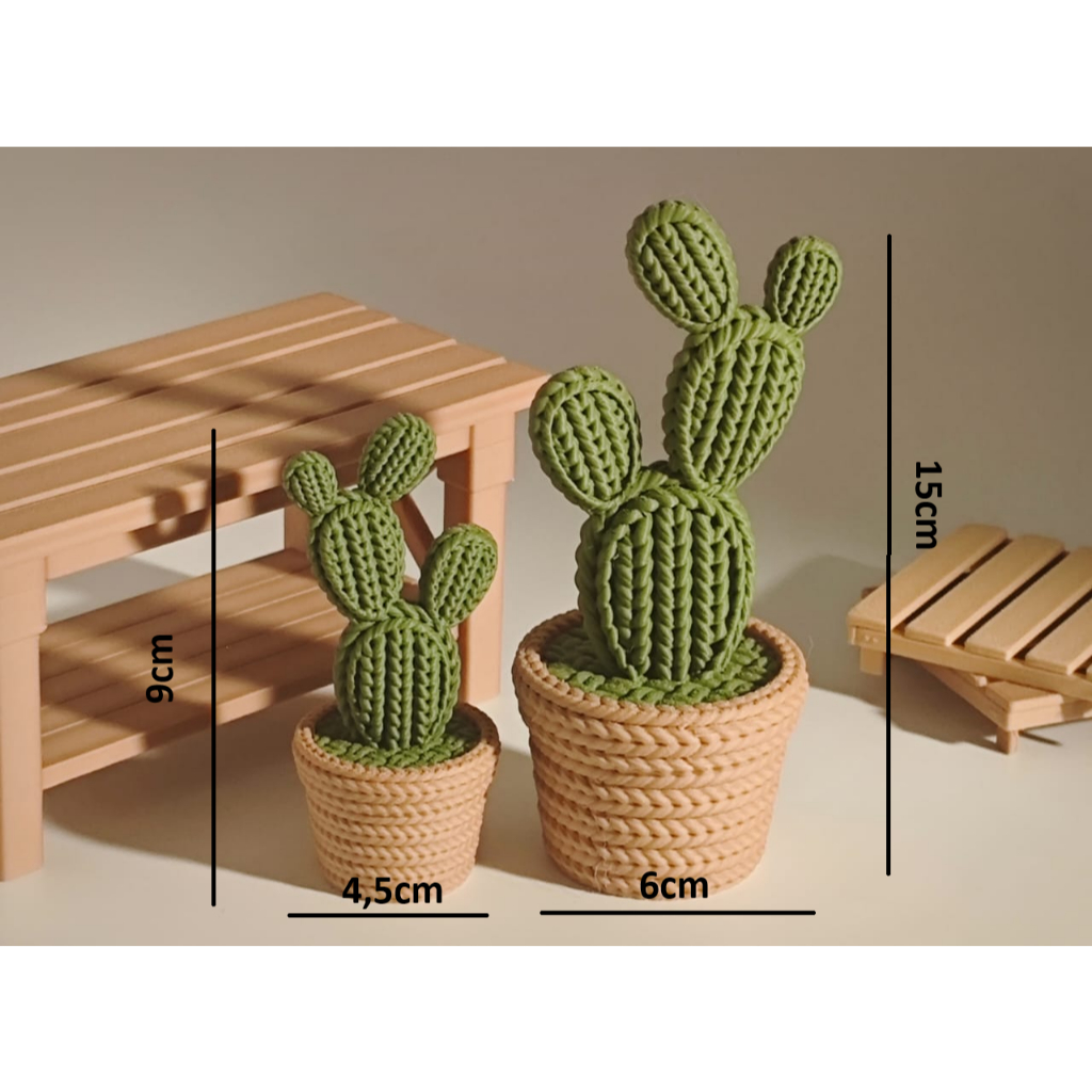 NOVIDADE!! Kit Cactos Decorativos 3D com Vaso Tricô – Decoração para sala – Escritório Minimalista e Moderna