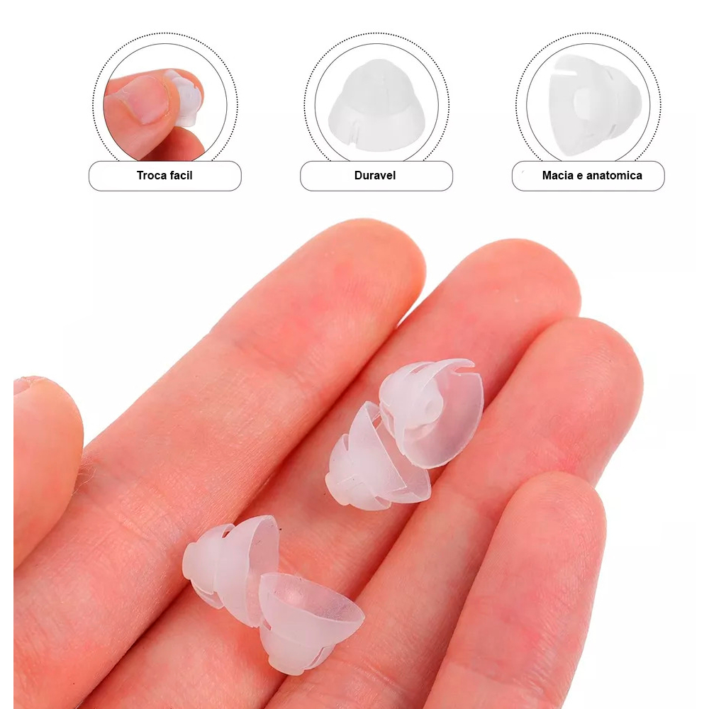 Olivas Para Aparelhos Auditivos *Modelo Power Ventilada - conforme imagens do anúncio. TAMANHO: PEQUENA/ MÉDIA/ GRANDE MODELO: Power ventilada extra macias para todas as marcas de aparelhos.. QUANTIDADE DO ANÚNCIO: 04 UNIDADES.