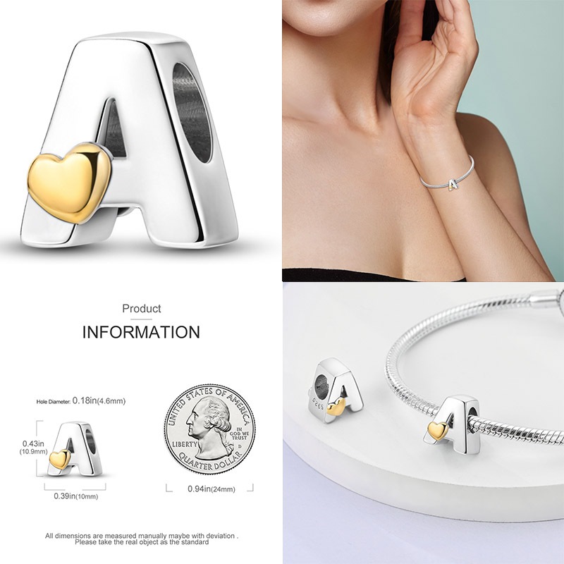 Novo 925 Sterling Silver Heart 26 Letras Alfabeto Encanta Contas Encaixam Pulseiras Originais Lucky DIY Jóias De Aniversário Presentes