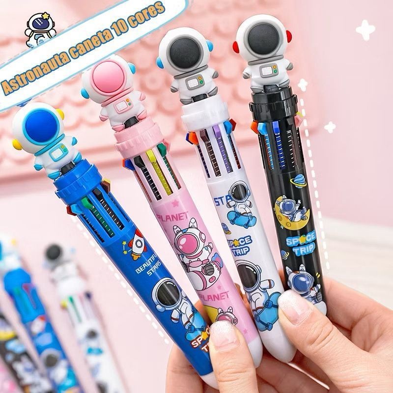 Novo Astronauta Criativo Caneta Esferográfica 10 Cores Estudante Multi-Funções Material De Escritório Prêmio Gift