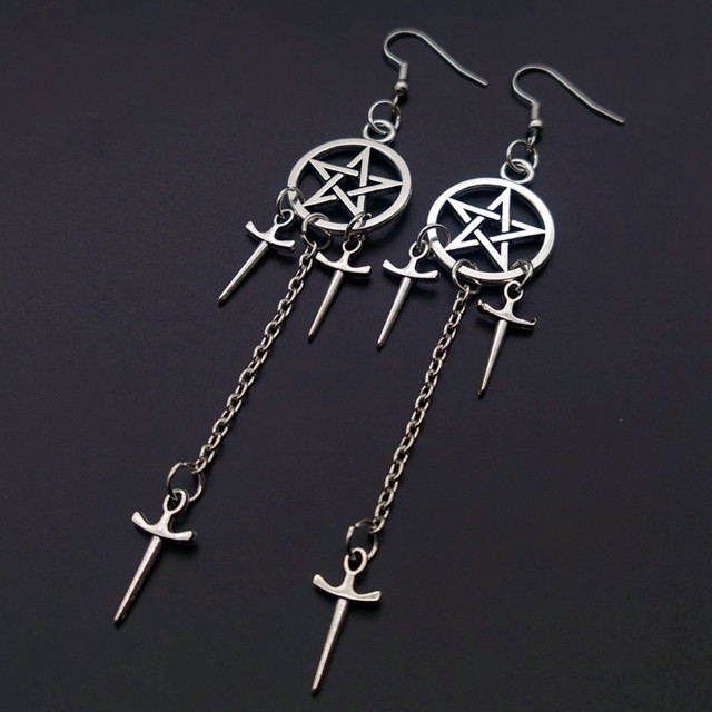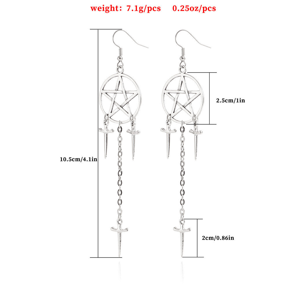 Novo Brinco Pentagrama Pingente Gancho Longo Para Mulher Brincos Geometria Cruz Gótica Jóias