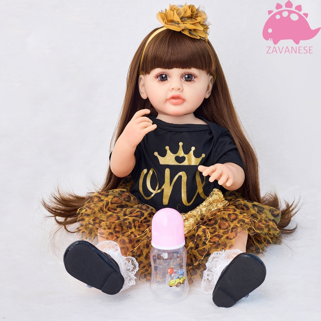 Novo cabelo longo bonito bebê boneca desenho animado simulação boneca pode tomar banho Zavanese