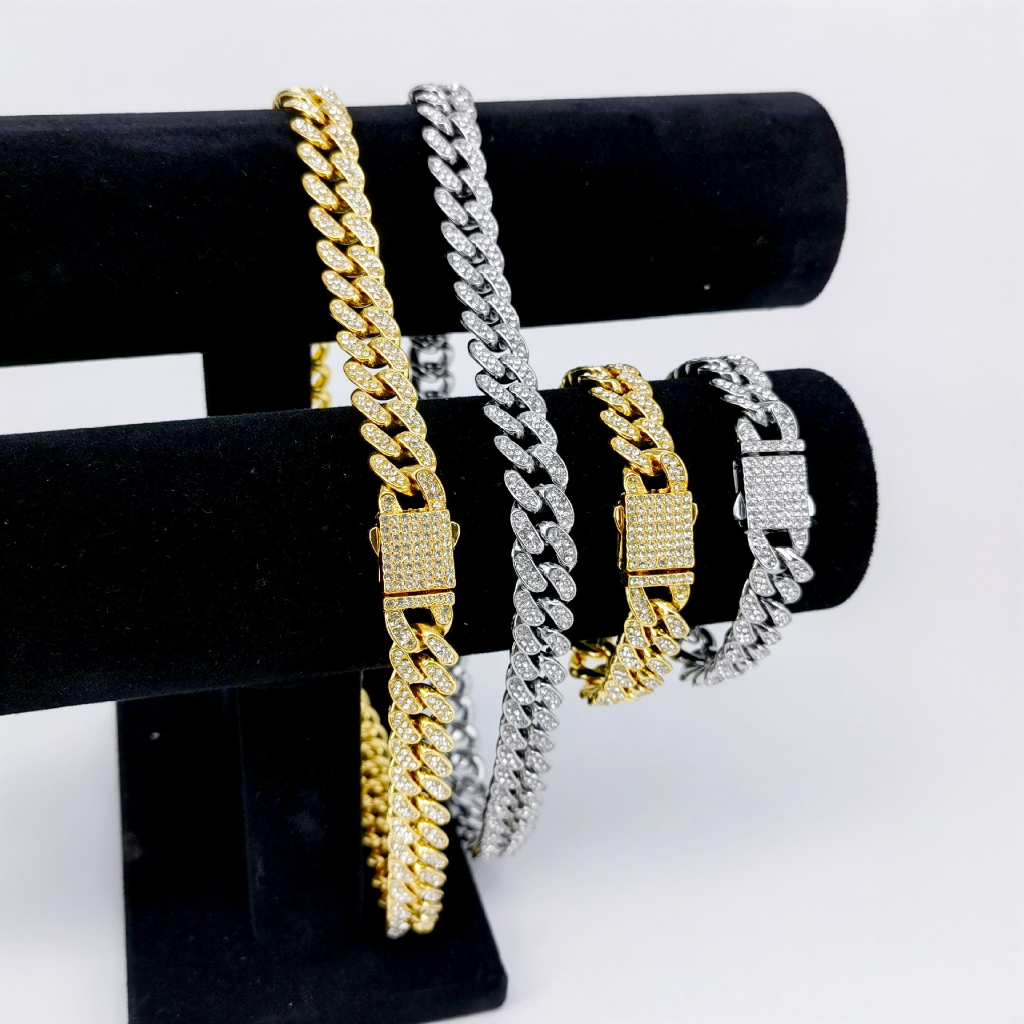 Novo Colar Europeu Americano De Hip Hop Pregos De Corrente 14Mm Cubana De Gelo Moda Todos Os Diamantes Pulseira Para Hom