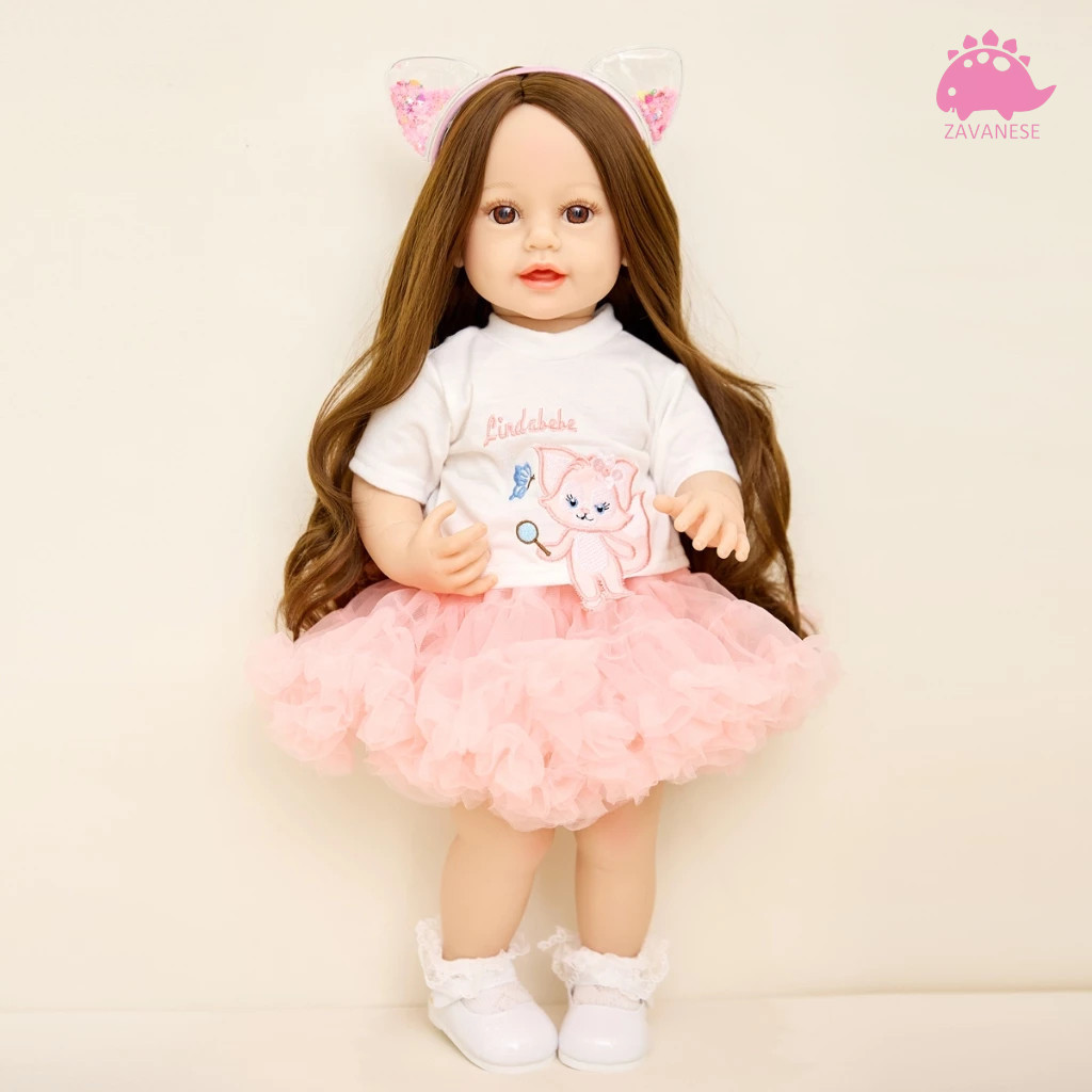Novo desenho animado bonito realidade renascer rosa saia bebê boneca cabelo longo ZAVANESE