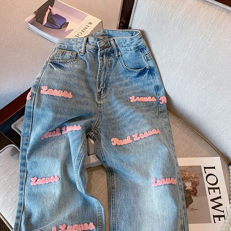 Onde comprar Novo Design Sense Carta Bordada Jeans De Perna Reta Cintura Alta Versátil Calça Larga?