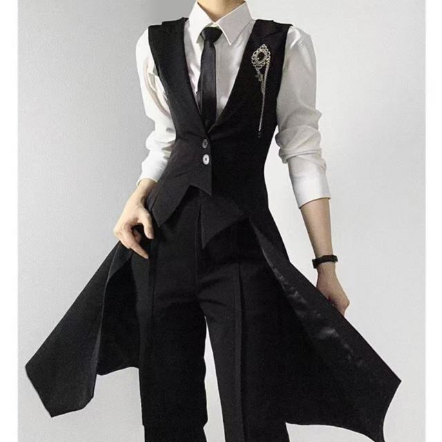 Novo Estilo High End Neutro Tonificado Terno Com Longo Colete Sob Medida Camisa Fino Ajuste DK Conjunto Design De Roupa